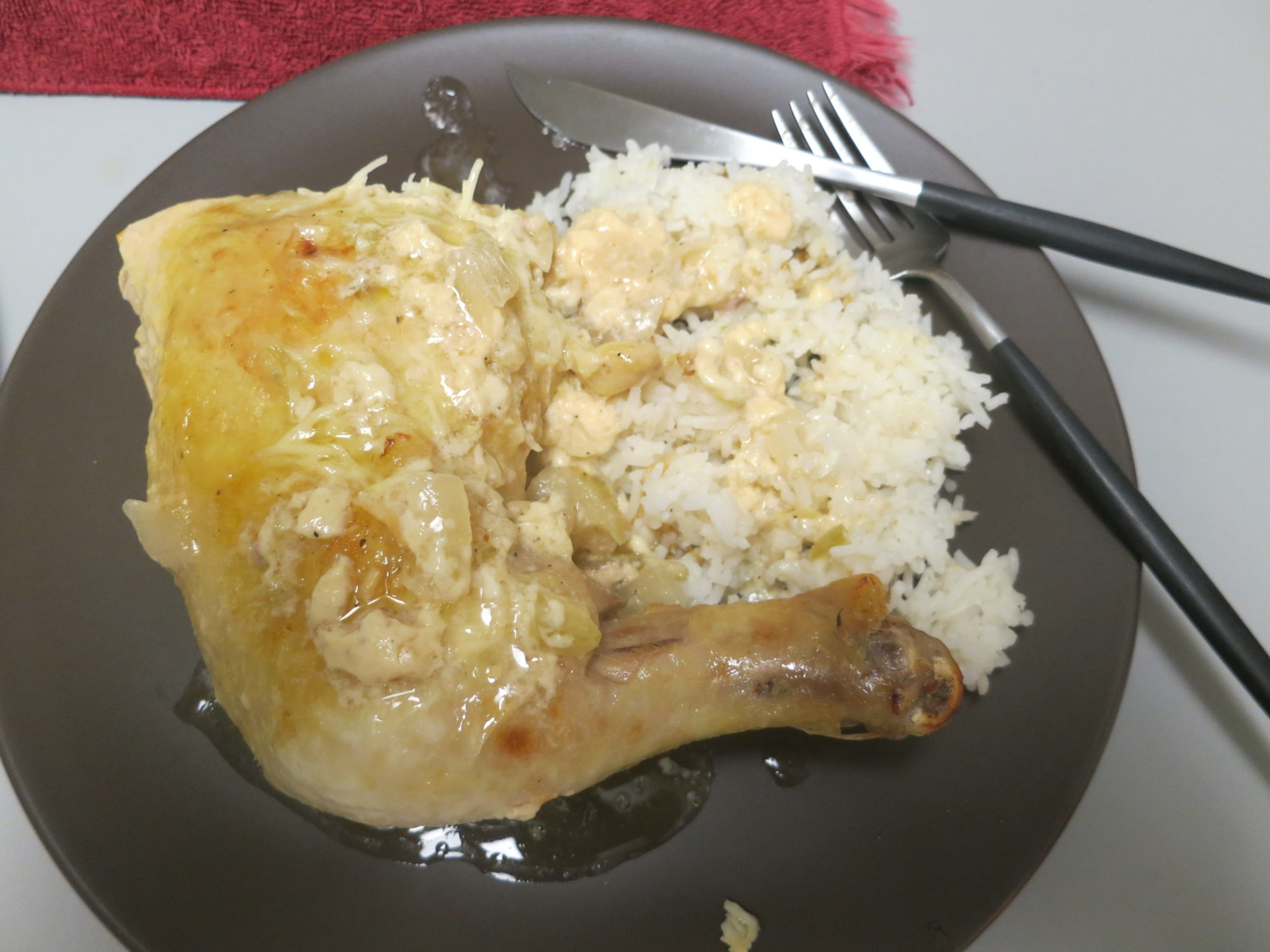 As I mentioned previously, I’m translating my grandmother’s recipes, the ones she hand wrote one summer when she was visiting us from Haiti. I wanted to start off easy so I chose Poulet à la Crème, or chicken in a cream sauce. The recipe calls for cooking the chicken (or duck) in its own juices until tender and has a good yellow color. Put the chicken, piece by piece, in a buttered oven dish. Add a can of evaporated milk and a can of cream of mushroom soup. Mix them well and cover the chicken. Add grated cheese to lightly cover the chicken and then bake until the chicken is fully done.