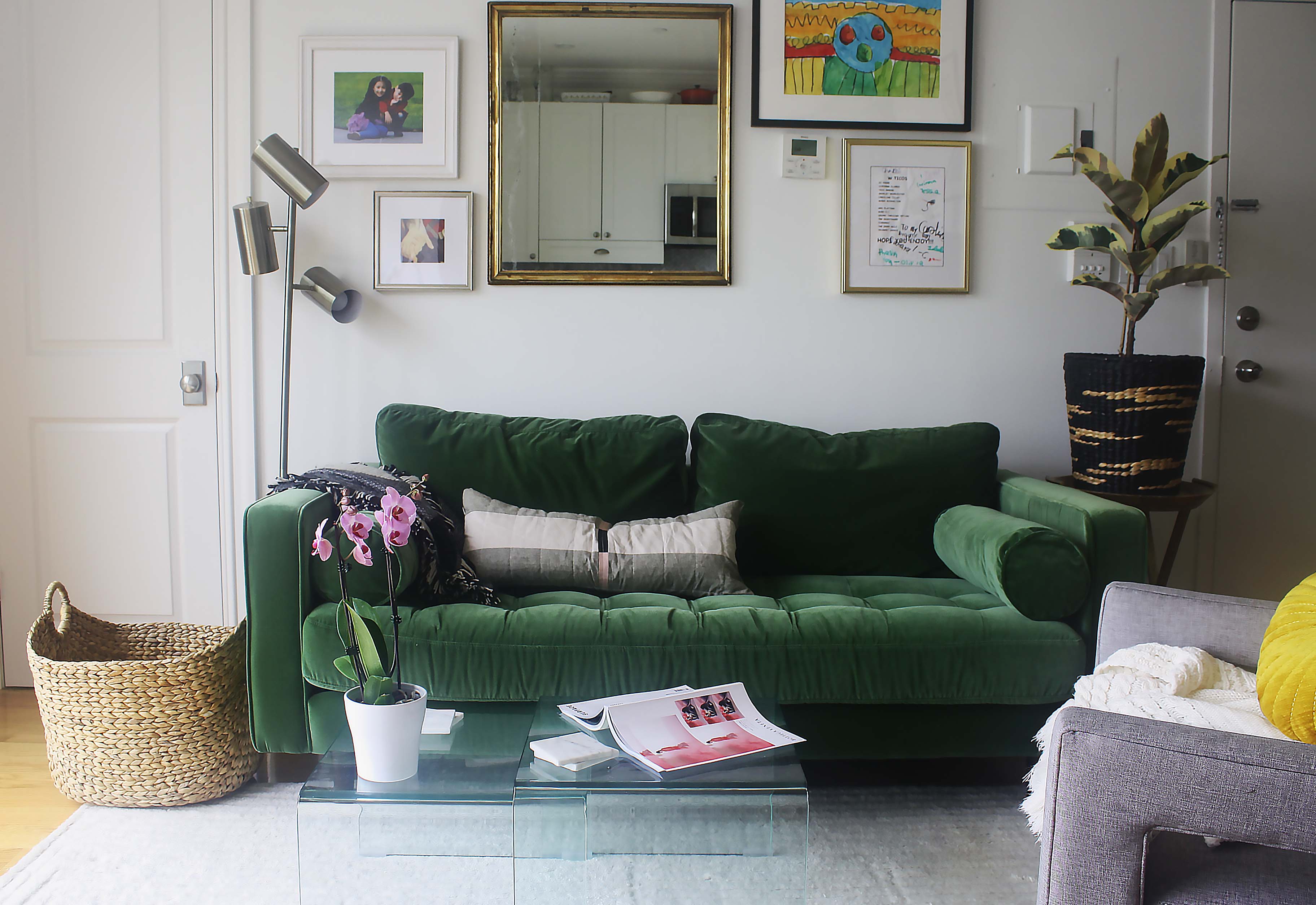 So many sofas and couches have been catching my eye of late. Part of the reason is because we have three sofas (yes, even #thecozycottage can house three sofas!), and all three were bought with budget in mind from Ikea. One Daniel bought before we met and we’ve had since our last Brooklyn apartment. It’s brown and ultra comfortable. The other two are sleeper sofas (one dark gray and one a light cream) that we purchased on a budget after we moved into our house. As much as I would love to get a gorgeous new sofa that is also ultra comfy, I don’t see it in our budget any time soon and having a dark-haired dog limits our options.