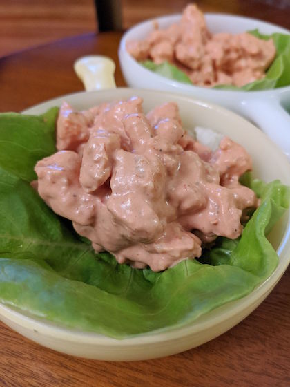 - To serve, cover the dish in a bed of lettuce and spoon the shrimp mixture into it.