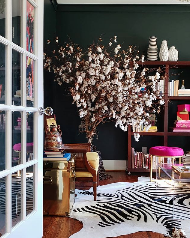 If you haven’t heard of this company, then I would like to introduce you to BlackCotton.Us, one of the last few black farmers actively growing cotton. This Instagram post explains who they are. I first learned about them when interior designer Neffi Walker used their cotton in her home, pictured below. And I was once again taken by the beauty of cotton as decor when Seana of Belly Baila also used cotton in her home – this time, by artist Erica Michele, and it’s gorgeous, as seen above.