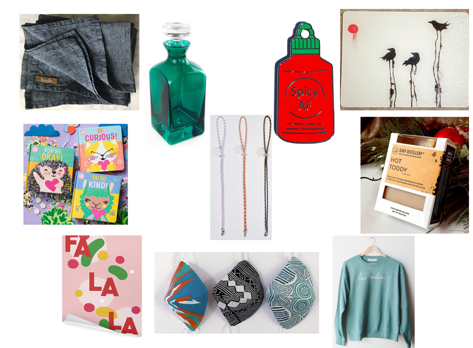 All gift ideas are pictured above and throughout the below.