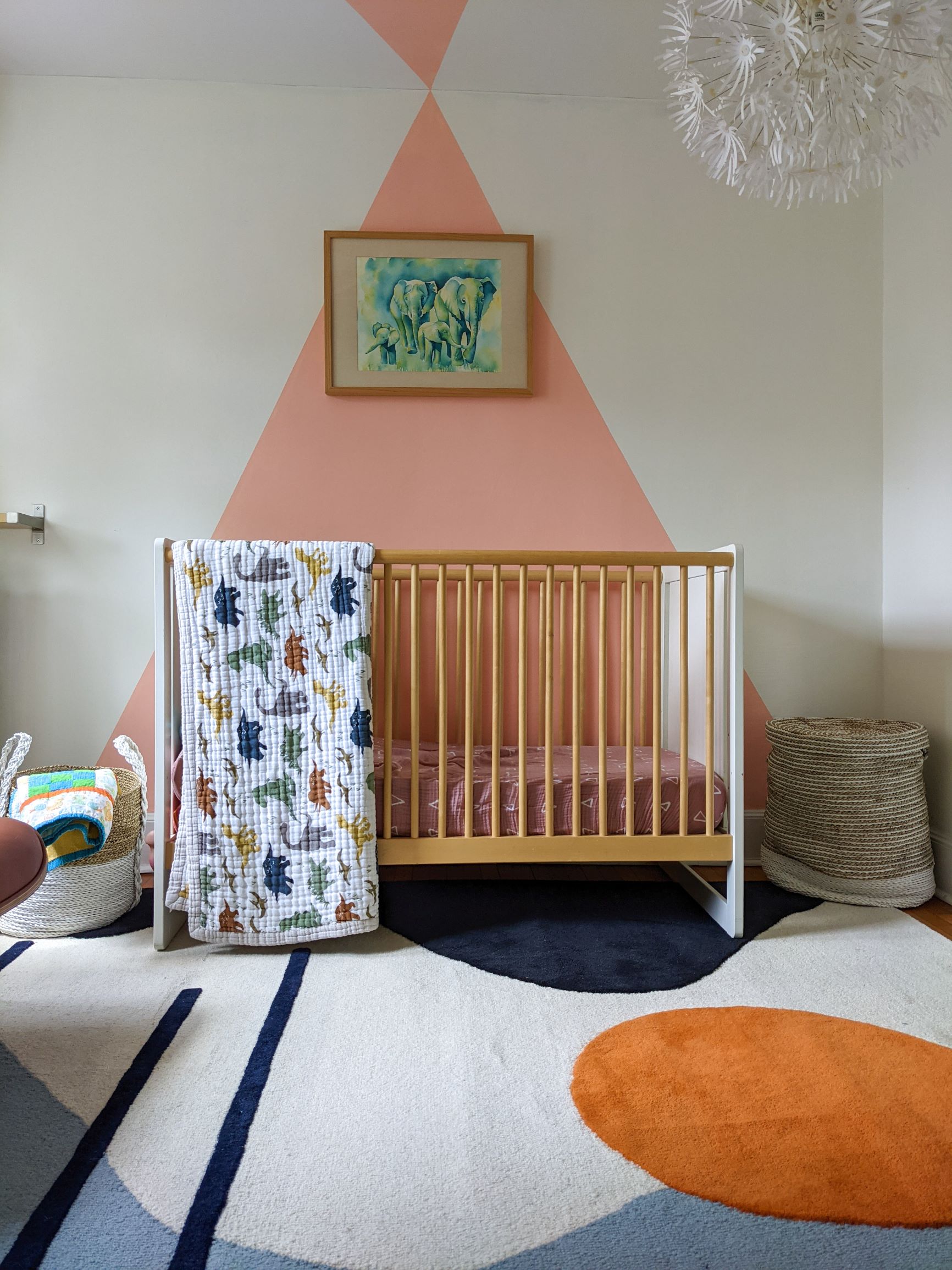 When I designed the nursery 2.5 years ago, I created a gender neutral space with bright, happy color. Now I’m looking at the next phase of this room as our 2 year old is already trying to climb out of his crib! At the same time, we decided it was time to get rid of the rug that was in the room. So now we have a new rug and I’m collecting inspiration for what this kid’s room will look like.