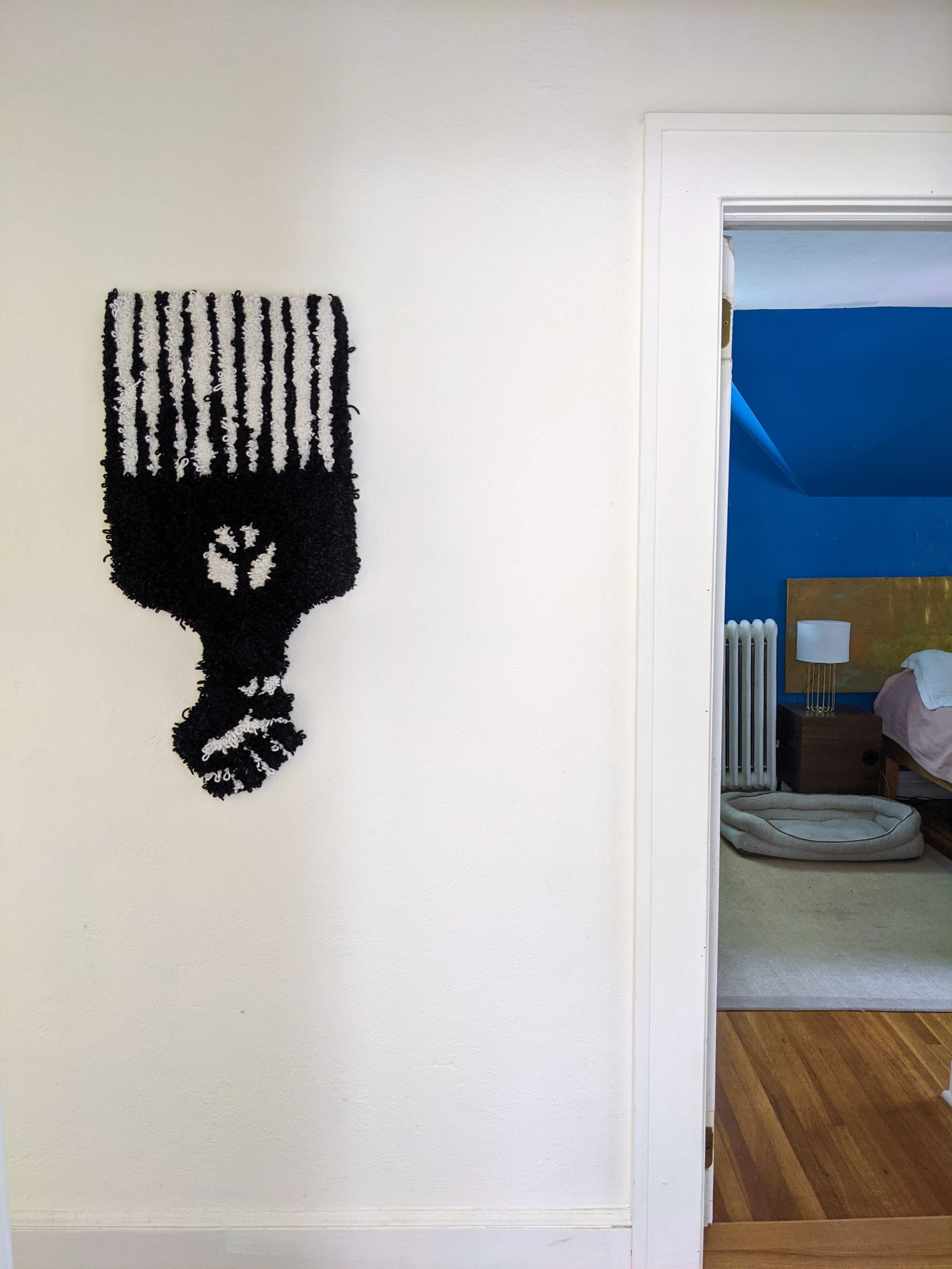 I added some new art to our home, as seen in the top photo. This is a total shameless plug for my goddaughter, who sells custom embroidery and tufted rugs/wall hangings. Check her out here and here.