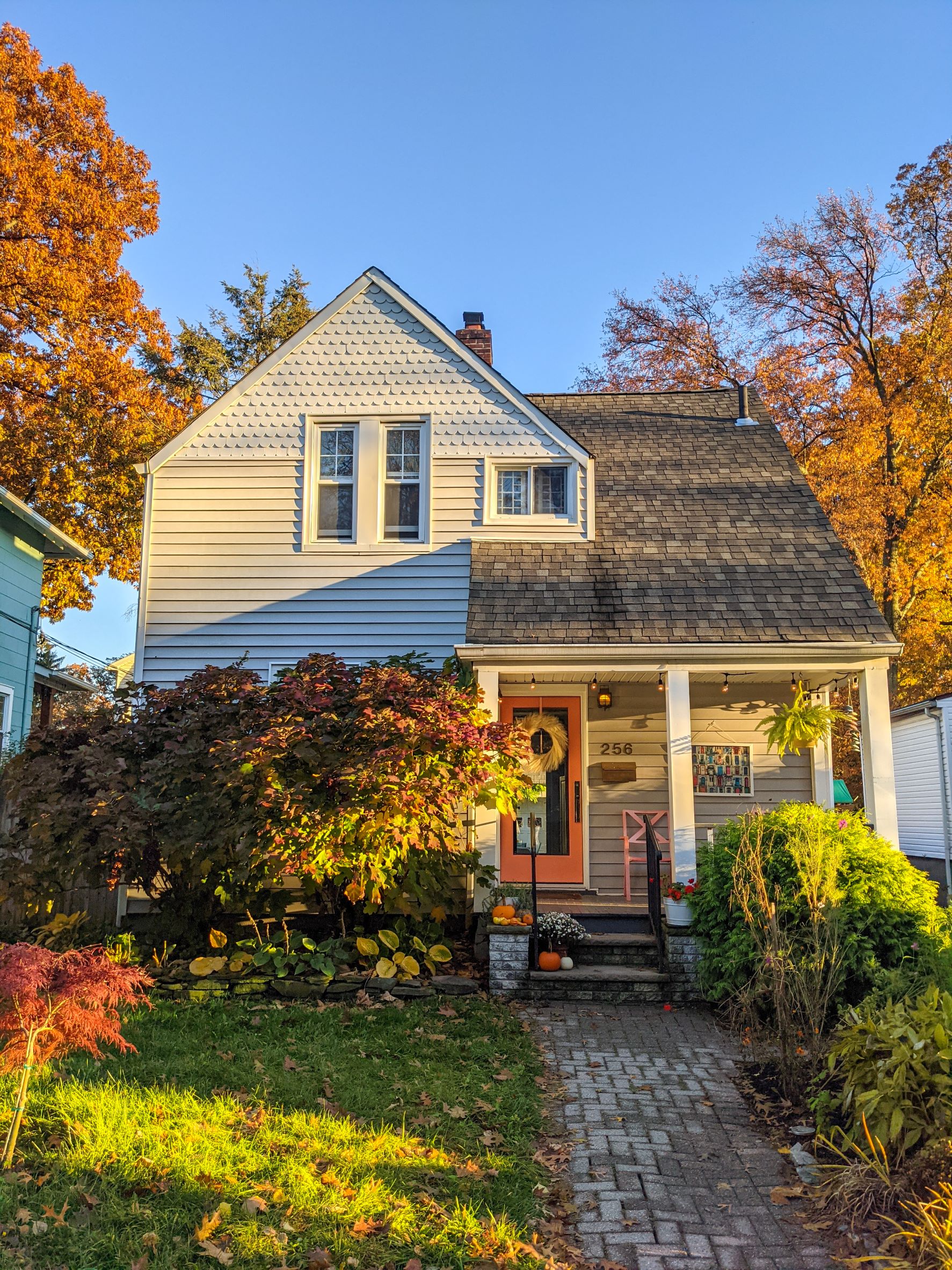 Surprise! We got a new front door at the cozy cottage! Boosting our curb appeal and having fun with the decorative aspects of our front door are things we’ve been doing since we moved in. With contractors here working on other areas of our first floor – hello, kitchen renovation! – we thought it was a good time to make the ultimate change to our front door.