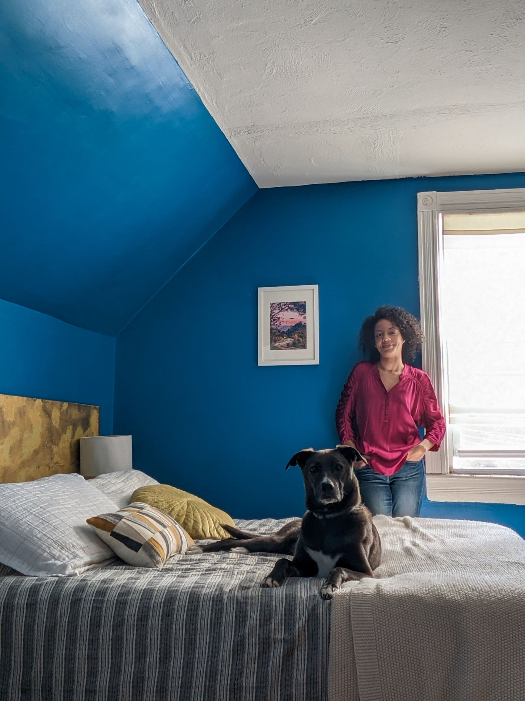 The DIY project achieved what I was going for, a piece of art as our headboard.